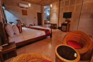 Puratan Qila is a good choice if you prefer tradition with a twist. With its rustic furnishings that reminisce about old Rajput structures, stone partitions, and wooden beams, this resort is a feast for the eyes. The rooms are sleek and snug. There are open-air sitting areas on the grounds, which are ideal for sipping tea and the call of nature.